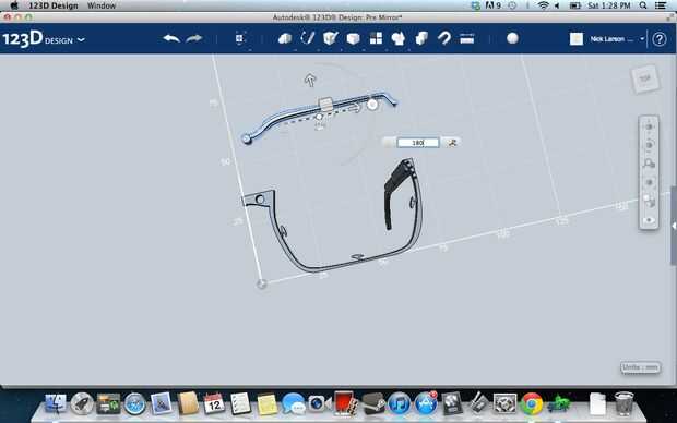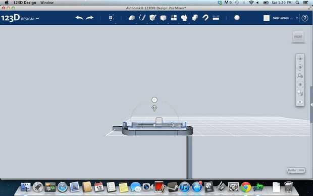 Bien, seleccione el brazo y gire 180 grados en el eje X (para que los pasadores están apuntando hacia arriba). Ahora moverlo en la dirección Y por lo que no superponen el marco. El ir a la vista frontal y mover en la dirección negativa de Z hasta que quede nivelada con la rejilla (aka tan Z = 0 en su posición).