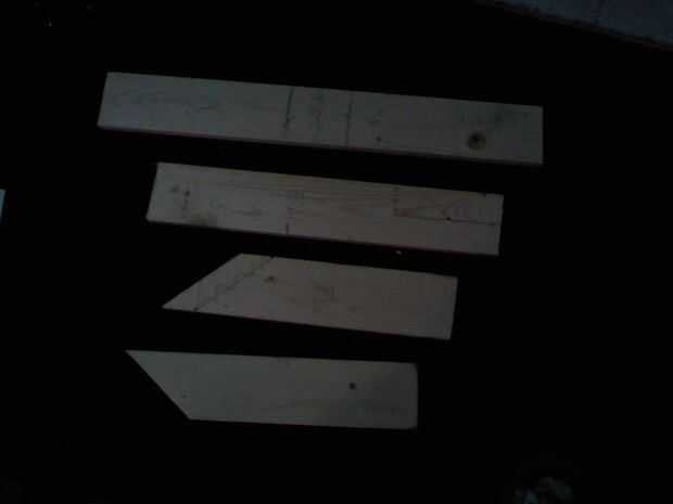 Ahora clavo # 3 y # 4, con el ángulo se corta solo en ellos, se alinean los a lo largo de la línea de 6 pulgadas por la mitad de un extremo del # 2.