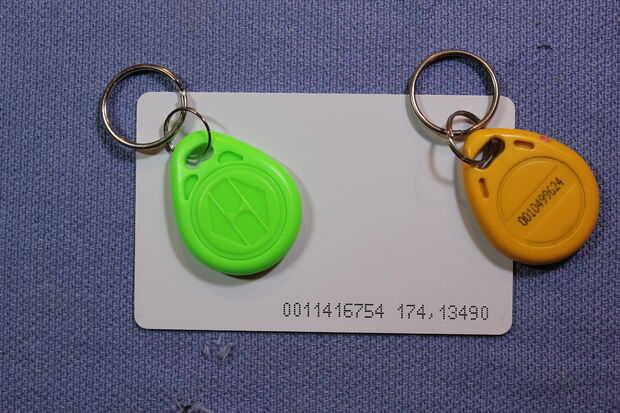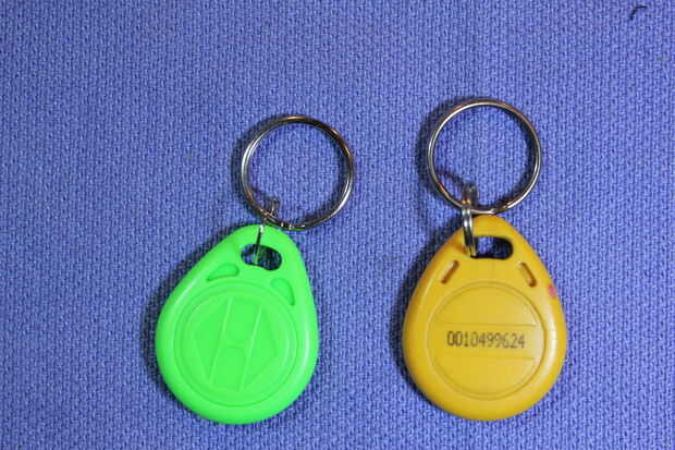 Aquí está una foto de los dijes utilizado en este proyecto. Se encajonan totalmente y son casi indestructibles. Una mirada al interior muestra una bobina y un microchip. Hay dos factores de forma que pueden operar el dispositivo, un FOB o una tarjeta. Sigo la versión de la tarjeta en mi billetera y un FOB en mi llavero. Sólo tomo mi billetera una ola sobre el lector y se abre. Utilizar la misma tarjeta / FOB para tener acceso a mi garaje y mi casa. Habrá más sobre esto en la sección de sketch de Arduino más adelante. Alimentación y datos son entregados y obtenidos a través de la bobina de antena. No hay baterías dentro de nunca fallar. Esta versión contiene un número de identificación y es de sólo lectura. Existen otros tipos que puede tener la información almacenada en ellos. Eso requeriría un lector diferente a la usada aquí. Todavía tengo que experimentar con la lectura / escritura tipo. Esta tecnología está encontrando su camino en nuestra vida cotidiana a una velocidad vertiginosa.