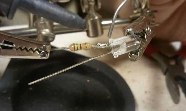 Empezar por la resistencia y el led como se muestra en la imagen de la soldadura
