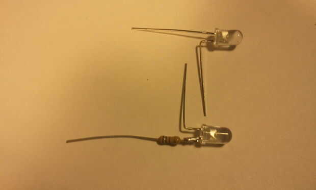 primero algunas cosas que usted debe saber... el pasador corto del led es el negativo (ánodo) final también tiene una marca en el exterior del led...