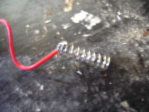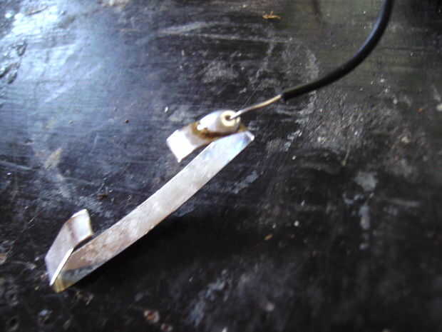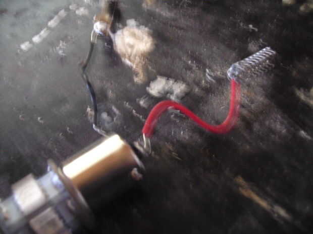 Realizar la primera 12v cargador USB abierto (primero apague la conexión y, cuando sea necesario, el tornillo) y luego retire la placa hacia fuera, su resorte y la pieza de hierro de la soldadura de. Suelde el cable negro a la pieza de hierro y el cable rojo a la primavera. Si se hace, soldar el cable rojo al terminal inferior de la luz y el cable negro a una de las dos piezas que sobresalen del lado (no importa qué lado). Ver las fotos.