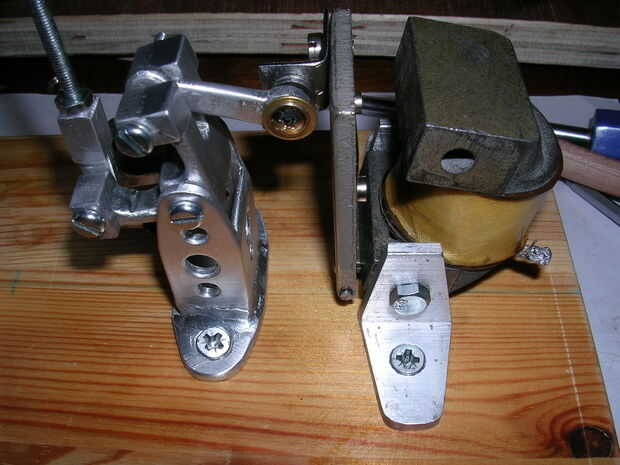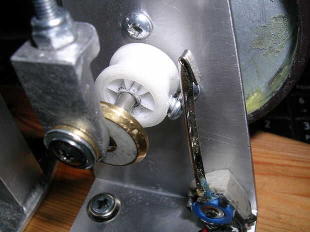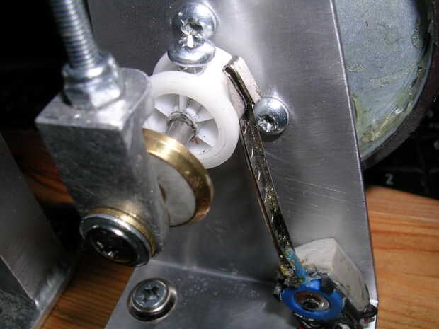 para hacer la leva un nailon polea perforó hacia fuera para el eje y un tornillo fue utilizado para actuar como la cam.