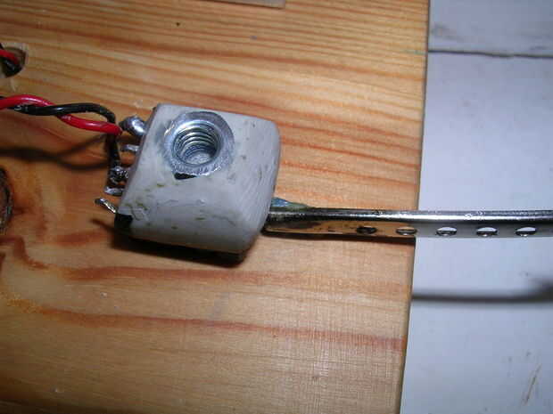 Una tuerca de nyloc de 4mm fue unido al conmutador usando masilla de epoxy, una vez que había curado se presentó a la forma.