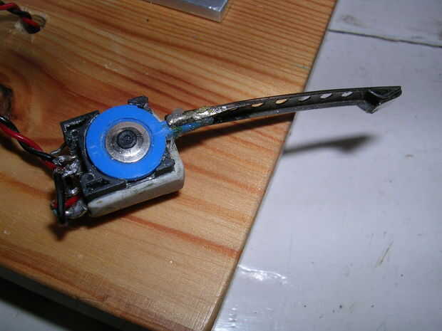 El clip fue unido al interruptor por prensar ligeramente por lo que fue un ajuste exacto, una pequeña gota de pegamento caliente se aplica al clip y lo presionó en su posición mientras esté todavía caliente.