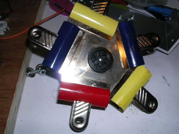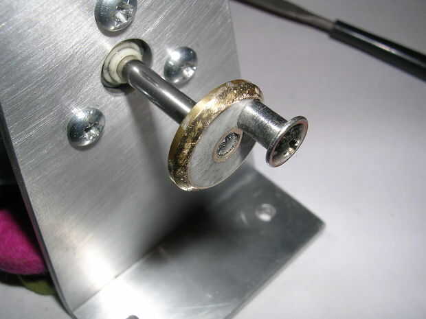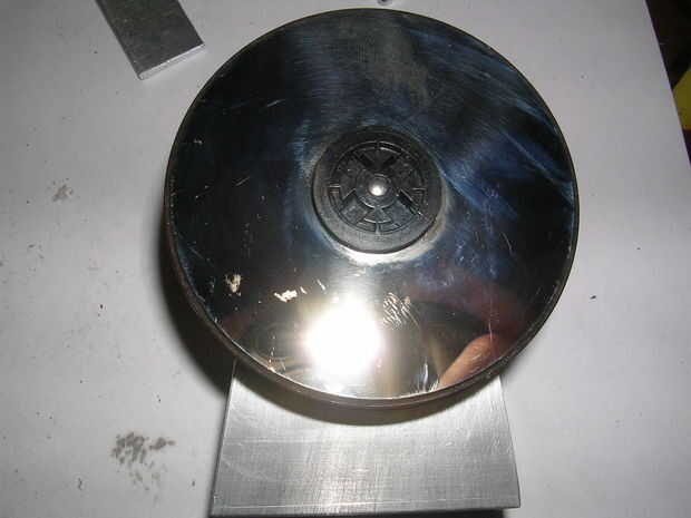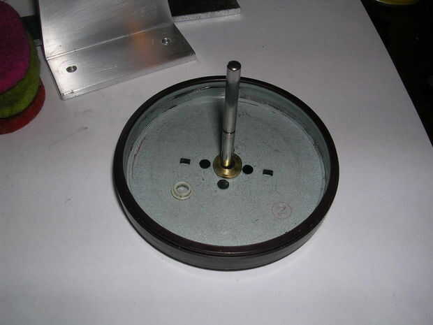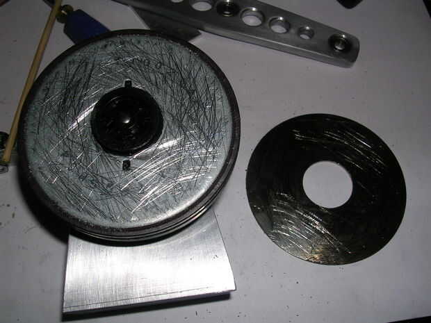 Un plato de un disco duro de 2.5" fue utilizado hacia el volante y fue pegado en epoxi parte 2.