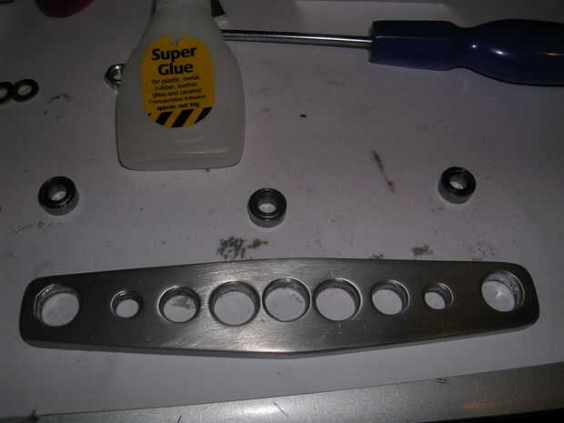 El rayo no fue diseñado originalmente para llevar rodamientos pero los tornillos sólo, descubrí que tenía algunos rodamientos y utilizado como eliminado todo el juego que el original había.