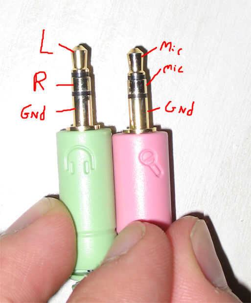 -Ahora comienza la diversión, tenga en cuenta las salidas de pin antes de empezar a hackear el separador hacia arriba, lo que vamos a hacer es hacer este adaptador para que sea una exclusiva auriculares / adaptador de micrófono (que no ser capaz de para uso este para dos personas a escuchar como fue jugador pensado). La razón de que esto no funciona correctamente con el Macbook pro es que el gato del micrófono que auriculares más utilizan no es el mismo pin como estos adaptadores. Tenemos que cambiar el micro clavijas jack para hacer que esto funcione correctamente.