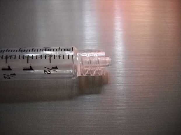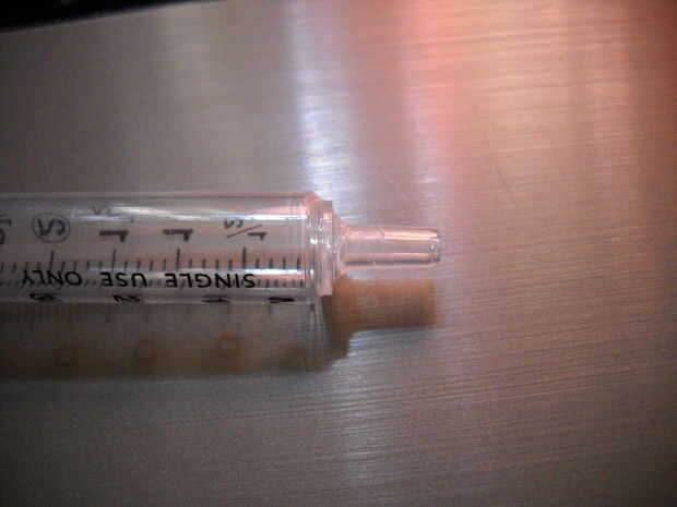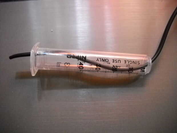 Cuando cortó la punta de la jeringa quedo un agujero de buen tamaño para el cable de la serpiente a través de todo el camino.