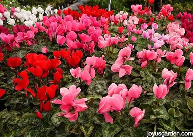 Estas son populares plantas aquí en California costa para la temporada de invierno. Flores de ciclamen tienden a abrir lentamente, pero el follaje es tan bonito e interesante.
