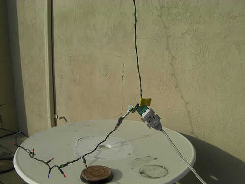 Ahora que has conseguido tu web hecha, es tiempo de mostrar su arte a su vecindario! Básicamente lo que quieres es un grande bastante área cerca de suficientes tomas de corriente donde puede colgar sus luces de Navidad de araña con cada una de las secuencias marco sacadas enseñó. Elegí derecho debajo de mi patio en planta alta, que era lo suficientemente grande para acomodar la cosa entera!