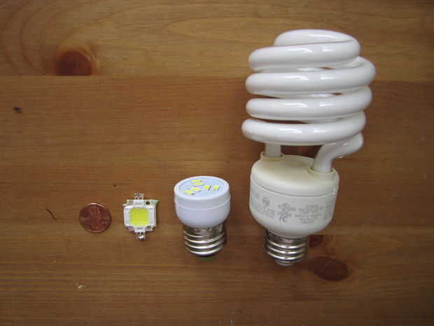 primero tenemos el favorito del año pasado, el gran ahorro CFL bombilla. nominal de 23W (100W incandescente igual) por unos 10$ por un pack de 4. fácil de romper, de gran tamaño. pero fresco al tacto