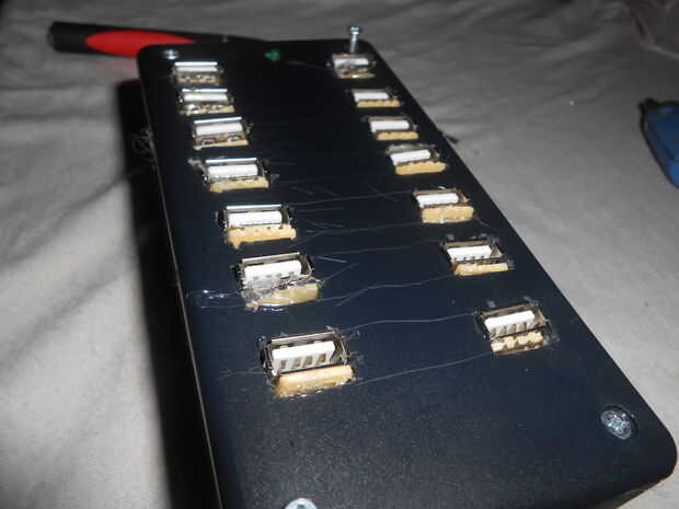 tengo un Dynex complemento cuatro puertos USB. Después de un mes, los puertos dejaron de trabajar uno por uno. Esto es una queja común entre aquellos que han revisado este hub en Amazon.com. Pero no todo está perdido.Paso 1: Lo que pasa Inserta tu di
