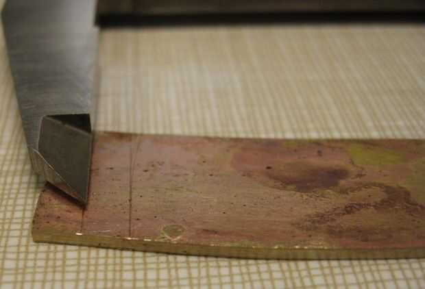 Ahora, presentar un bisel de 45 grados en los lados opuestos de cada tira del anillo. Así, cuando llegue el momento de soldarlos juntos, habrá más superficie de la articulación, dando lugar a un vínculo más fuerte.
