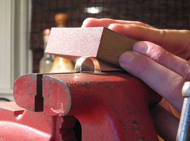 Asegúrese de que utilizar la lija para suavizar cualquier protuberancias, depresiones o esquinas. Los dos lugares más probables son el empalme de la soldadura y los bordes exteriores. Un poco de pulido ahora hará un anillo mucho más cómodo.