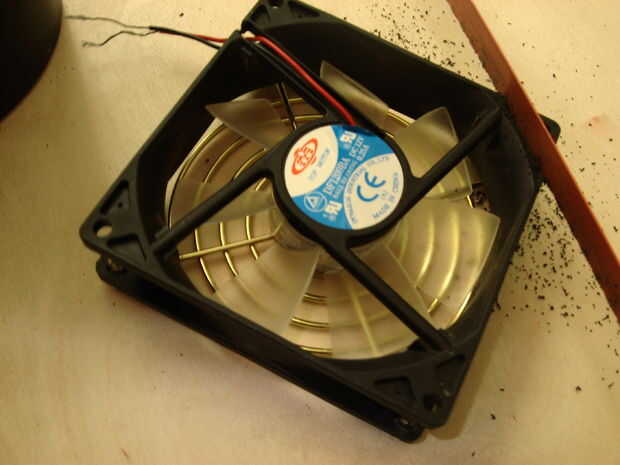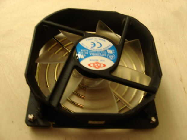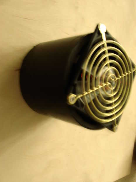 a continuación tienes que cortar y archivo de las esquinas de un lado del ventilador de 120mm por lo que cabe fácilmente en la parte superior en el más pequeño trozo de tubo. Tenga en cuenta, no corte ambos lados o caerá en tu AC. no hacer el ajuste para apliques de cuero apretado o se puede poner hielo en la unidad.