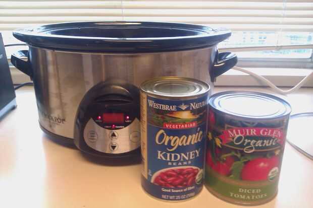 El segundo paso más largo es el tiempo que lleva conseguir los tomates en cuadritos y las habas de riñón hasta temperatura. Soy perezosa, así que yo sólo uso la poder más grande que puedo encontrar de cada uno en la tienda en vez de tomates para picar. Tenga en cuenta que prefieren diversos cocientes de habas y tomates, es perfectamente razonable hacer uso de dos veces el tomate y no frijoles, la mitad los tomates y los granos de dos veces. La restricción principal es hacerlo para que el nivel del general de líquido es lo suficientemente alto para adaptarse a la carne, así que si no añade suficiente tomate será seco. La mayor parte del líquido en el Chile viene de los tomates. Para mí, utilicé una lata de 25 oz de frijoles y 28 oz lata de tomates, ya es el tamaño sucedieron a entrar en la tienda.