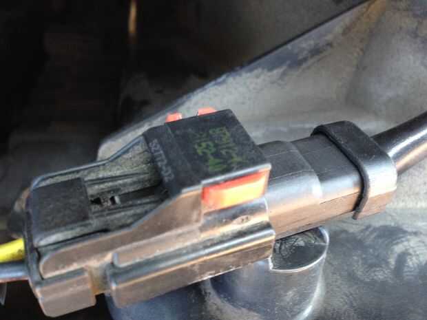 2. en el lado del pasajero, unido a la cubierta del ventilador, verás un conector con un pequeño golpecito rojo - ver foto de arriba. Tire de la lengüeta (o empujarlo desde atrás) de aproximadamente 1/4"- alrededor de 5mm hasta que la ficha no puede viajar ya. En el lado del conector que está más lejos del ventilador, usted verá otra ficha, esta vez esto es realmente parte del conector y el mismo color que el conector, baje esta ficha para desenganchar el pestillo y separar los dos conectores. Enchúfelos en, iniciar el motor, poner el AC en decirle a la computadora para encender el ventilador. Si enciende el ventilador, era probablemente una mala conexión si no, continúe la solución de problemas. No se olvide de apagar el motor.