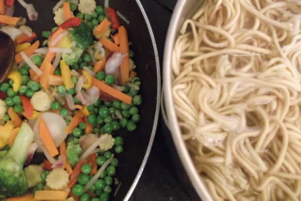 15 minutos la mantequilla de maní y carne de Chile (o carne de cerdo, gambas, tofu, pollo...) fideos! (4 / 7 paso)