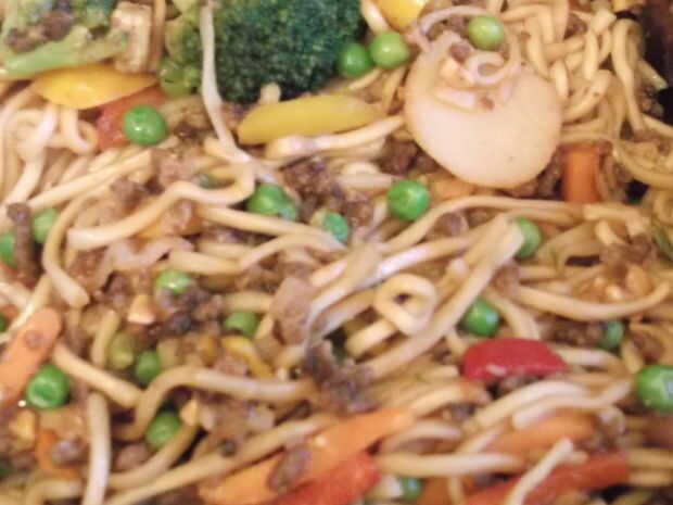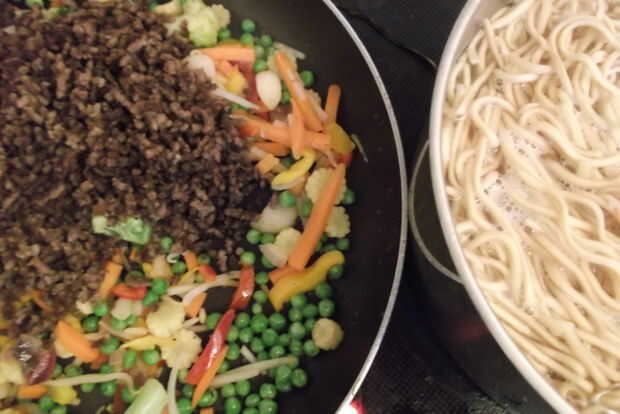 15 minutos la mantequilla de maní y carne de Chile (o carne de cerdo, gambas, tofu, pollo...) fideos! (5 / 7 paso)