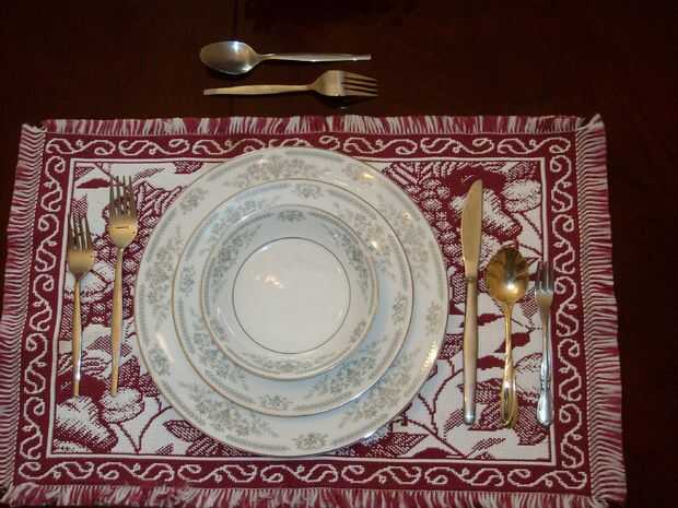 La cuchara del desierto se coloca directamente encima (en la posición 12:00) de la placa de servicio. La cuchara del desierto es la cuchara más pequeña en este arreglo.