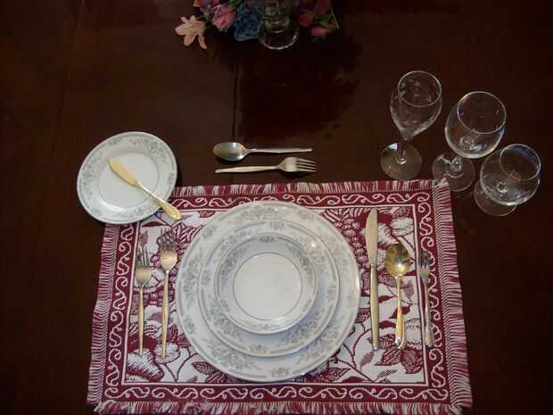 Hay varias versiones diferentes en cuanto a cuántos vasos cuando poner una mesa. El número de vasos necesarios para un ajuste de lugar es según qué y cuántas bebidas diferentes huéspedes podrá disfrutar en la cena. En este arreglo he presentado he utilizado tres vasos: uno para vino tinto, uno de vino blanco y el otro para el agua (también conocido como un gobblet de agua).