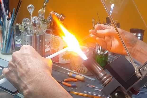 Conecte la varilla de vidrio claro en la cabeza del pulpo. Cuanto más tiempo la clara barra el menos calor que las manos se expondrá. Sugiero una varilla larga clara (30mm). Con dos mangos conectados ahora es mucho más fácil girar la masa y el calor para arriba.
