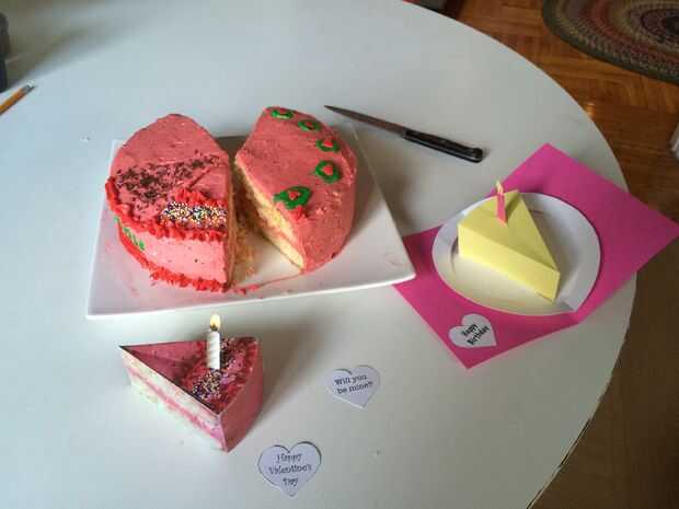 Si te fijas bien, verás que uno de estos pasteles se ha reproducido sobre papel: Diseñé una rebanada de pastel de papel pop-up, que puede descargar desde mi sitio web. No absolutamente tan sabroso como el original, pero mantiene mucho más tiempo!