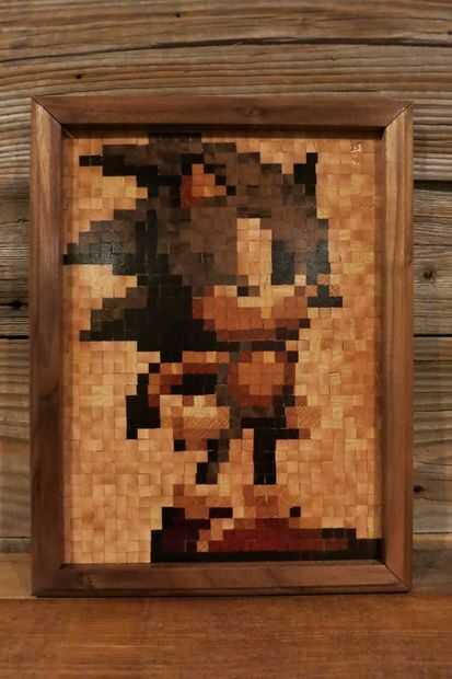 En los últimos años, he visto varios tutoriales y fotos donde madera cuadrados se utilizan para crear sprites de 8 bits de videojuegos clásicos. La mayoría de ellas es bastante sencilla y utiliza plazas de madera producidos en masa que son manchados y pintados para crear un cuadro acabado. Después de ver varios ejemplos, yo sabía que quería hacer mi propia.