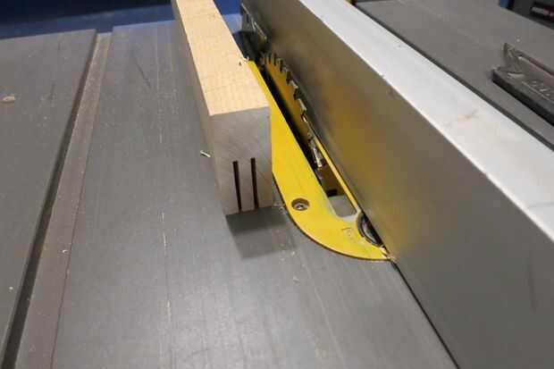 Mi principal objetivo en la selección del tamaño debe conseguir 2 pixeles en el espesor de cada placa de 3/4". Comencé en el Hanon y ajuste la profundidad de corte a un poco sobre el espesor de la Junta y la guía en 5/16". Pase que la Junta se verticalmente frente a ambas direcciones por lo que te queda un corte único centrado en la media pensión.