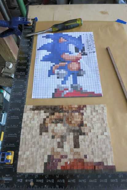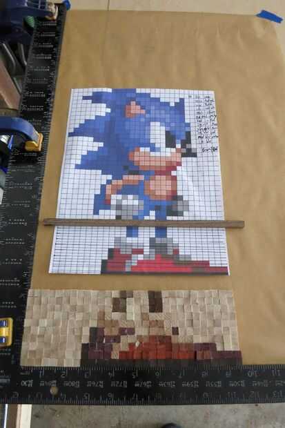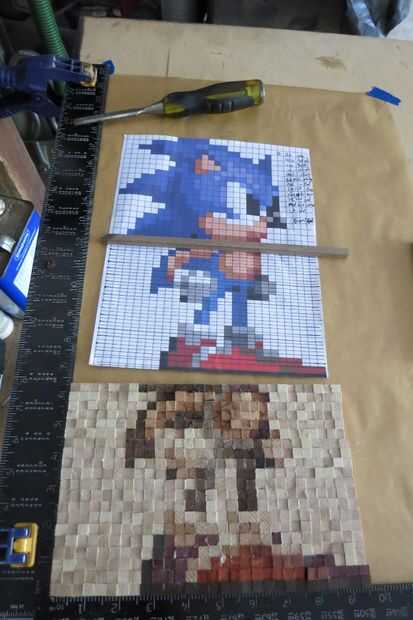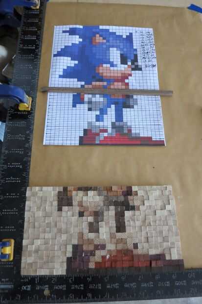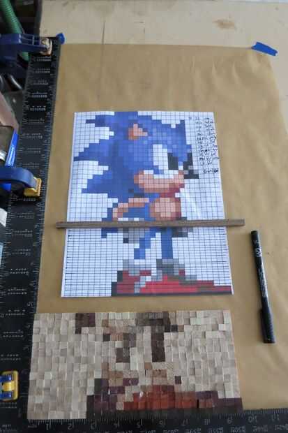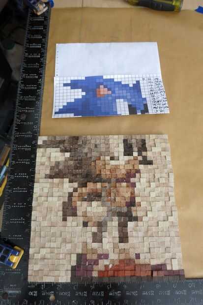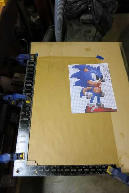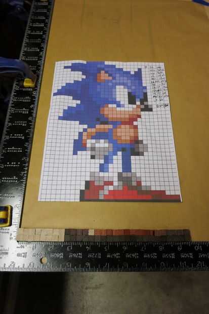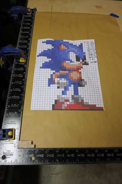 Empezar por trazar cada línea de píxeles que necesitará (fui a dos a la vez) y más baja izquierda a derecha, agregar pegamento a cada articulación y pegando los pixeles en su lugar de trabajo.