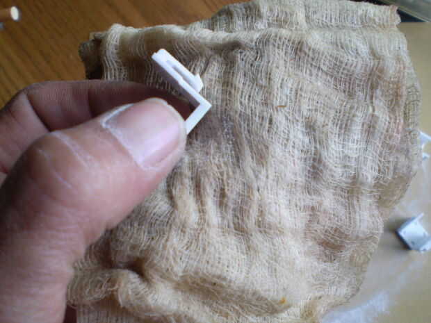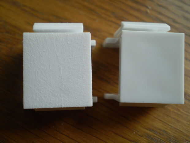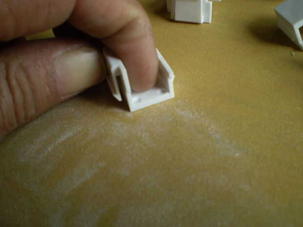 Para que la pintura se adhiera a la superficie de los enchufes debe ser rugosa para arriba. Hacer esto con un trozo de lija de grano 220 en una superficie plana. Frote el tapón en movimiento circular hasta que el brillo se ha ido. A continuación ejecutar un trapo pegajoso sobre la cara para quitar el polvo de lijado.