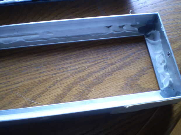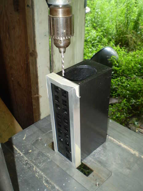 Ahora poner la placa en el marco de la cara y poner en la posición en la caja. Asegurándose de que su cuadro es vertical, con su bastidor como plantilla, perfore los agujeros correspondientes en el cuadro. Si usted no tiene una ranura en el taladro puede utilizar un trozo de aluminio en la parte posterior de la caja para nivelarla.