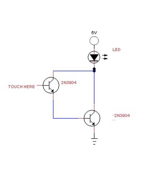 Este es un dispositivo simple con solo 3 componentes que amplifica las corrientes 1600 veces, utiliza un truco aseado de un transistor amplificando otro transistor, también conocido como el par de Darlington para amplificar la corriente que fluye entre un dedo de las personas y el suelo MINISCULE lo suficiente como para encender una LED de 3mm