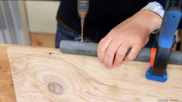 ¿Para perforar un agujero en un tubo, pero es difícil de mantener el tubo en su lugar? Abrazadera a una pieza de madera y va a ser mucho más fácil de perforar.