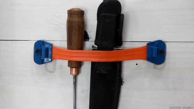 Algunas abrazaderas (tales como la abrazadera Bandy) tienen una banda de goma conectada a ellos. Quite la cinta de goma y taladre en la pared para un carrito de herramienta instantánea de la pared.
