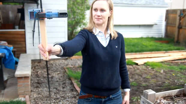 Utilizando un trozo de madera, una pinza y un teléfono celular o cámara de apuntar y disparar, sujete la cámara al palo!
