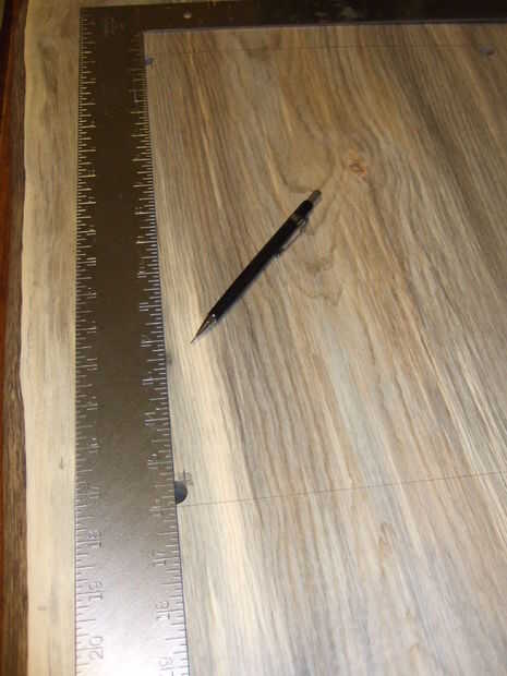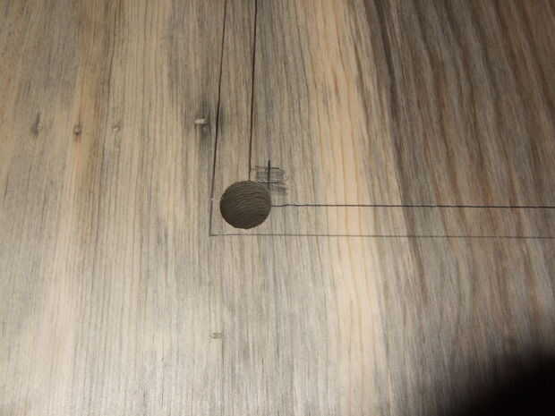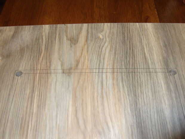 Para cortar la mayor parte del área de visualización, primero dibujé una línea desde el centro de cada agujero a los dos centros de agujero adyacente. Que hubiera sido más fácil hacerlo antes de taladrar los agujeros, pero echaba de menos esa oportunidad. Sin embargo, la colocación exacta de la línea no era lo que crítico, y algunos echando un vistazo muy bien para este paso. Simplemente utiliza la Plaza de carpinteros, había seleccionado el medio de los agujeros y dibujó una línea con el lápiz.