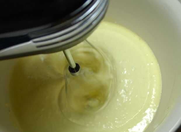 Batir azúcar y queso crema. Golpe en los huevos, la mitad de la vainilla, jugo de limón y una cucharada de harina.