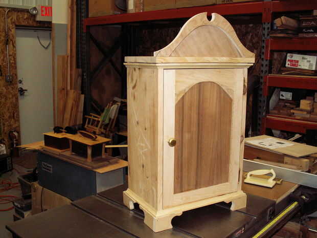 El prototipo está hecho de pino de un viejo armario estante y algunos cortes de la madera contrachapada de un proyecto anterior. Todos eso rat holing finalmente pagado apagado. El prototipo es poco más de 40 pulgadas alto. Cuando mostró a algunas amigas que son los fabricantes de joyería de encargo [como las mujeres con un montón de joyas son la audiencia principal para estos] su primera reacción fue contundente: "Hombre, un gran lechón!" "¿Qué diablos hiciste SSSOOO grande para que esté?"