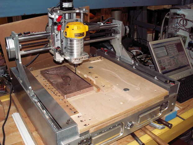g. CNC router. Compré un parcialmente completo router CNC de 3 ejes y acabados, mecánica y electrónicamente. Para hacer piezas curvas y pequeñas piezas de moldeo, no hay nada mejor. La zona de corte es aproximadamente 20 pulgadas por 20 pulgadas. Algunas de las piezas que hice para el pecho de especia tomaron sólo minutos para cortar. PRO: Lo que usted pueda imaginar, puede hacer un router CNC. Más comunes son 3 ejes, aunque un 4, 5 o 6-Tarraco router CNC para carpintería sería nirvana. CON: Curva de aprendizaje a hacer uno, curva de aprender CAD, CAM y el programa de controlador [MACH3 o EMC2] que son necesarios, realmente EMPINADA curva de aprendizaje competente y productivo con un router CNC. De gran ayuda: cnczone.com; clasificación aunque todos los anuncios e hilos de rosca buscando la solución a tu problema es un trabajo duro, aunque la educación. Mejor que lo que está en la televisión cualquier día aunque y sin anuncios nauseabundos tampoco.