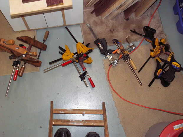d. herramientas: martillos: final, la Peña de la bola, golpe muerto. Cinceles: 1/8 de pulgada a 1 pulgada en incrementos de 1/8 de pulgada. Tengo un "set" de los huérfanos. Utilizo piedras de agua para mantenerlos afilados de todo miedo. Sierra: Grande del tirón Sierra, pull pequeño, profundo-garganta traste sierras, traste poco profunda garganta. Puse las hojas en las sierras de traste para que cortaban con cadena tirante. Varias láminas con diferentes configuraciones de TPI. Para la medición: sólo usar una regla plegable de alta calidad, solo tengo uno y es indexado con la escala en la Sierra de mesa. Cintas métricas son buenos para rápido, dobla las normas son para la exactitud. También utilizo reglas acero de 12 pulgadas de operarios; conseguir uno que es 16 Avos y 10th's; Encuentro de la marca Starrett son los más fáciles de leer. Un conjunto de calibradores digitales que lee en pulgadas y 10th's. Planos: Cuantos más mejor. Si sólo tienes uno obtener un plano negro de Lie-Nielsen no. 60-1/2 bajo ángulo ajustable de la boca. Yo tengo una, funciona mucho mejor que cualquier persona puede describir y vale la pena cada centavo. Abrazaderas: Es cierto, como puede ver en este Instructable, nunca tendrás muchas pinzas. Bares baratos barato incluso abrazaderas tienen un lugar. Las grapas de cabeza paralelo [Bessy y Gross Stabil] están garantizadas para hacer pegamento-ups más fácil y el resultado absolutamente predecible.