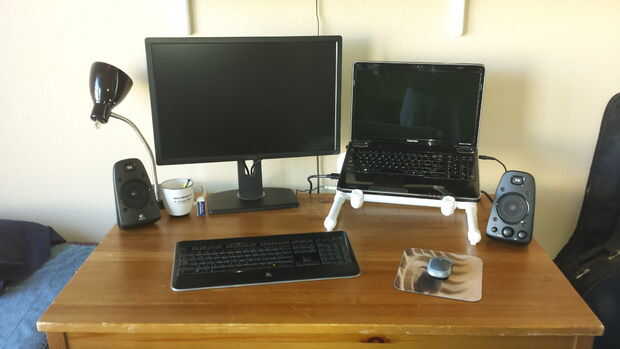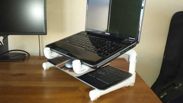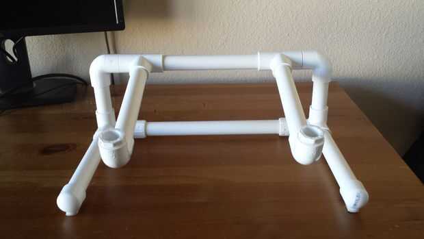Porque el diseño es autoexplicativo en vista, y porque las cotas variaría con el tamaño del portátil, no estoy incluyendo las instrucciones paso a paso. Además, unir piezas de PVC hace cortes precisos menos útil porque todos ellos cram en un poco diferente.