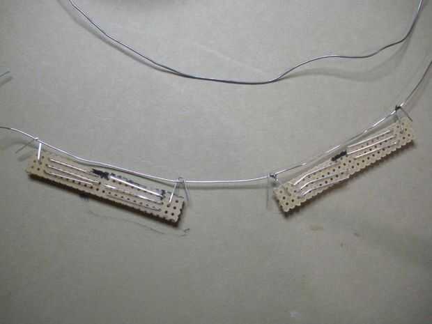 Carril de ánodo: Al igual que en las paredes exteriores que un hilo de filamento sólido funcionó en un círculo, conectando todos los ánodos de los LED en paralelo.