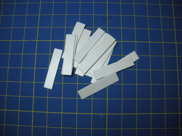 - Una vez que se colocan uniformemente, saque uno y Aplique pegamento en los extremos y un lado largo de la pieza.