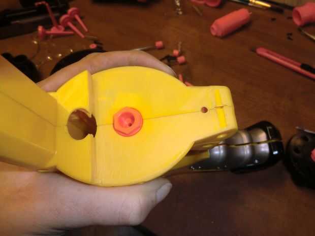 Marque los mediados agujeros de las piezas conector, manteniéndolos en su lugar con un cañón conectado a ellos. Debido a la falta de un taladro de ángulo, perforé los agujeros con una broca de 4,2 mm con la mano (después de taladrar un agujero más pequeño en un ángulo).