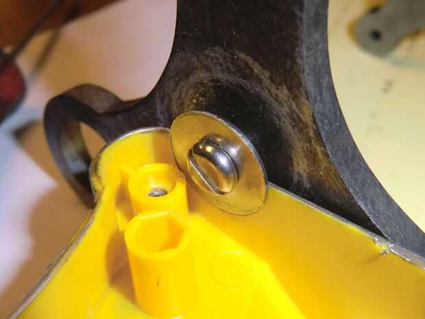 Para estabilizar el plástico, pegar una arandela en la parte posterior de cada agujero, como se muestra en la primera foto. Luego fijar las piezas de conector con un tornillo y dos tuercas cada uno.