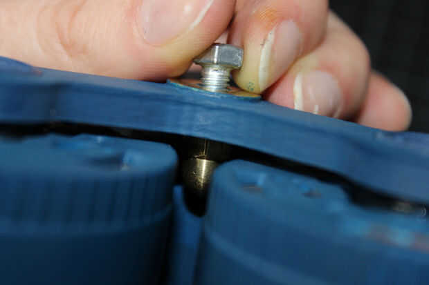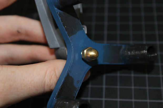 Acortar los tornillos a la longitud correcta. Es más fácil si atornillar la tuerca, antes de montar el cañón. Pegue la arandela en el conector, como se muestra en la imagen.