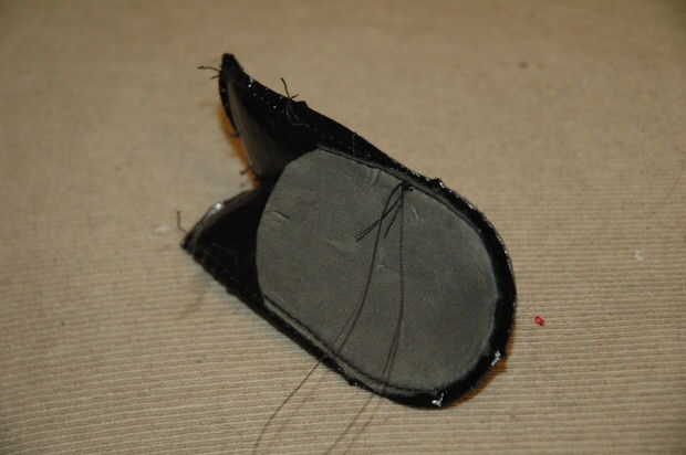 Cuando encontré el tamaño correcto corta el exceso y resewed los lados y atrás de la costura. Primera aunque hice una copia de la línea de fuera de la fabrick así que pude hacer nuevas zapatillas fuera de otros materiales.