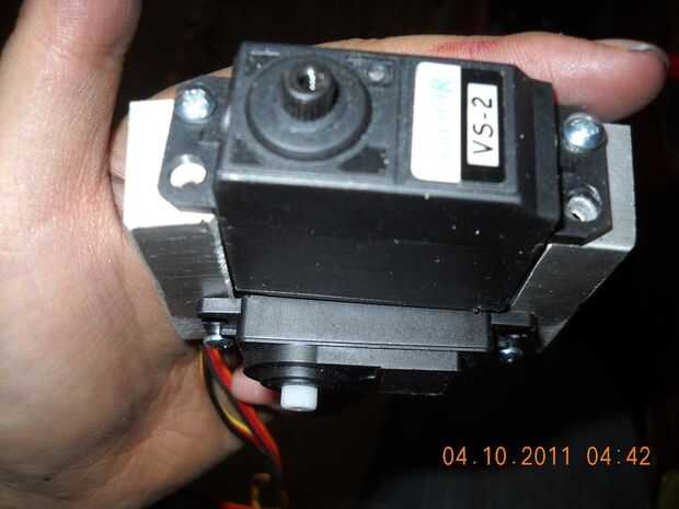 Si alguno de los agujeros está fuera del centro, recuerde que usted realmente sólo necesita poner dos tornillos (uno a cada lado) para el servo, no todos los tornillos de brida de cuatro.